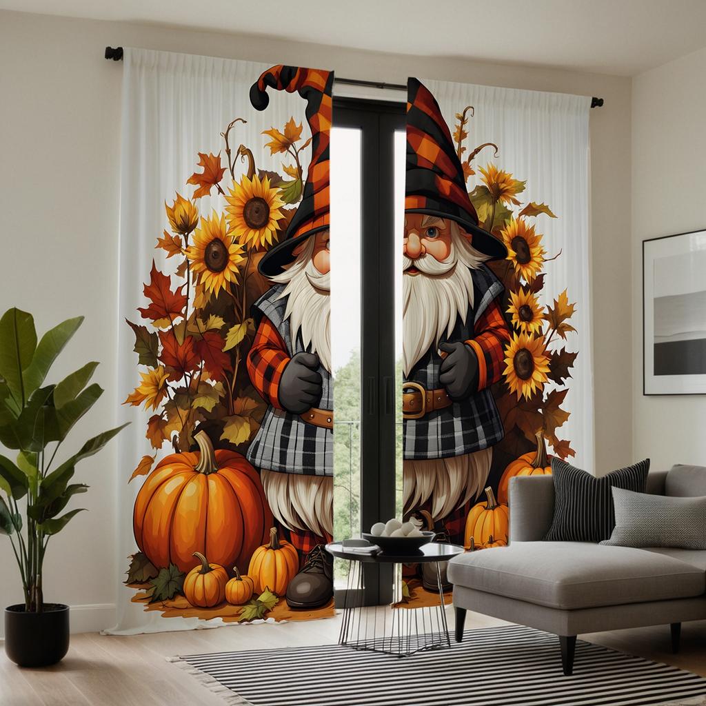2 Stück HD Tragehut alter Kürbis Sonnenblume dekorativer Vorhang Gelbe Bindung digital bedruckter Vorhang Heimdekorationsstil dekoriert