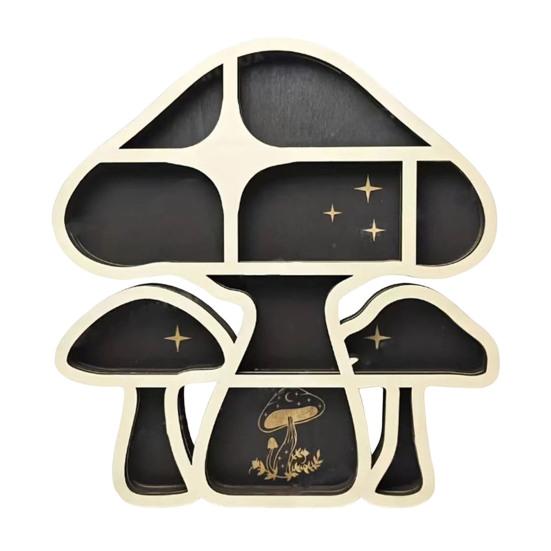 Werten Sie Ihre Inneneinrichtung mit unserem praktischen und stilvollen Ausstellungsregal auf. Dieses Wandregal mit den Maßen 30 cm x 28 cm x 3 cm verfügt über separate Fächer, die sich perfekt zum Ordnen von Kristallen, Edelsteinen, Kerzen, ätherischen Ölen und mehr eignen.. Das schwebende Pilzdesign verleiht jedem Raum einen Hauch von Eleganz und Charme. Dieses aus hochwertigem Holz gefertigte Regal ist langlebig und robust und sorgt dafür, dass Ihre Schätze jahrelang sicher präsentiert werden.. Die exquisite Handwerkskunst und die matte Lackierung verleihen ihm eine schöne und schützende Oberfläche. Durch seine natürliche Holzmaserung und die harmonischen Farben passt es perfekt zu zahlreichen Einrichtungsstilen.