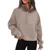 Damen Stehkragen Plus Fleece Einfarbig Hoodie Langarm Tasche Locker Halbreißverschluss Pullover Hoodie Top