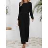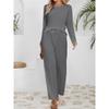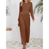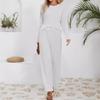 Damen Sets lässig locker gestrickt Jacquard langärmeliges Rundhals-Oberteil hoch taillierte Kordelzug-Hose