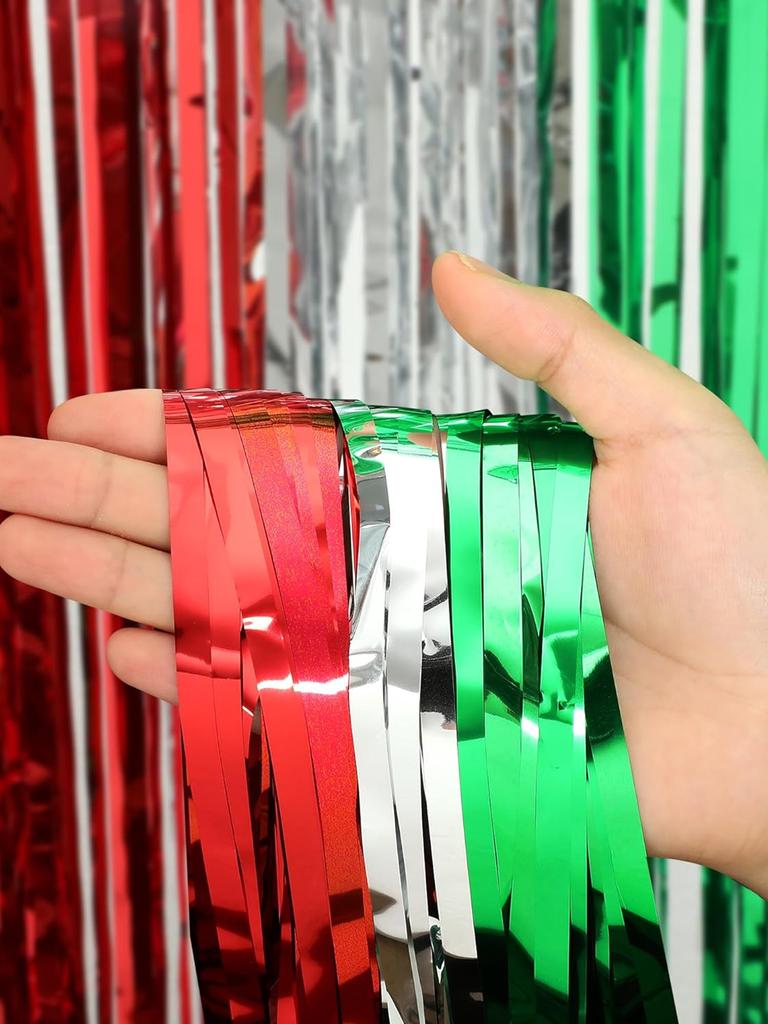 Weihnachtsquastenvorhang Weihnachtsfeier Dekoration, 1x2m Rot Silber Grün Glänzende Quasten Party, Hintergrund Partydekorationen