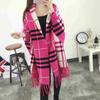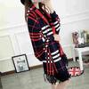 Pullover neuer Damen Cape locker kariert dick warm klassisch Oberbekleidung Strick Fledermaushemd Quaste Schal Jacke