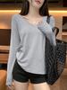 Einfarbiges Basic-T-Shirt mit V-Ausschnitt und rechter Schulter für Damen im Herbst, locker und schmal, einzigartiges und schönes Unterhemd