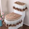3-teiliges Toilettensitzset aus Stoff mit Spitze, dreiteiliger Toilettensitzbezug aus goldenem Samt, U-förmiger Toilettendeckel mit Reißverschluss und Toilettenständerring