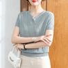 Kurzärmliges Strick-T-Shirt aus Eisseide für Damen, Sommer-T-Shirt für Mütter, lockeres und dünnes kleines Oberteil