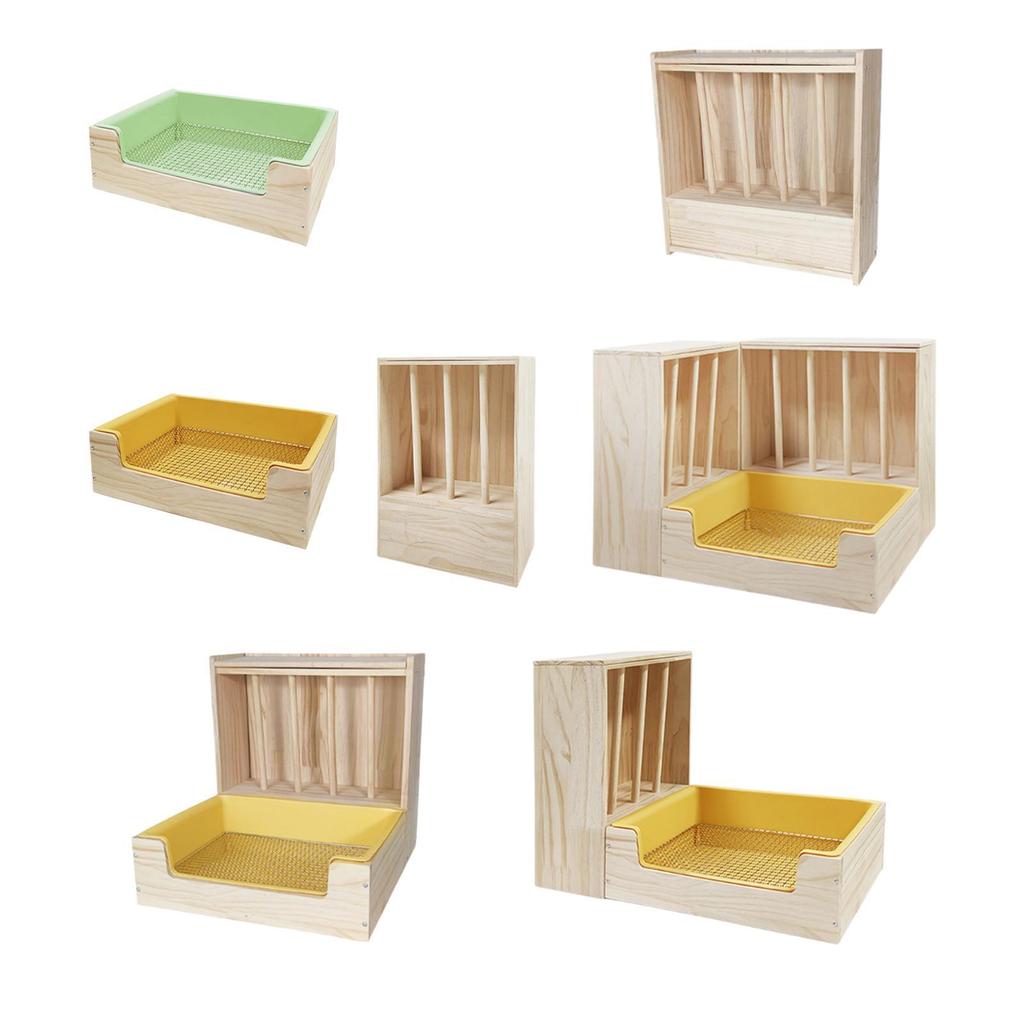 2 in 1 Rabbit Hay Feeder with Toilet Box,Bunny Feeder Manger,Wooden Food Feeding Manger,Grass Rack Litter Pan for Small Animals