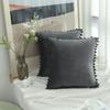 LMETJMA 1 Piece Burgundy Throw Pillow Covers with Pom Pom Velvet Euro Plush Cushion Covers for Sofa Couch Bedroom JT417