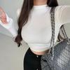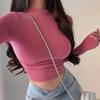 Kurzes, sexy Oberteil mit halbem Stehkragen für Damen Herbst und Sommer Eng anliegende Unterwäsche Slim Fit Langarm-T-Shirt mit A-Basis