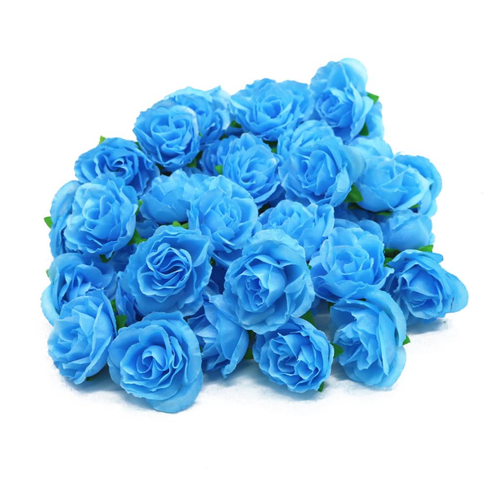 50 STÜCKE Simulation Rosenkopf Dekorativ Wiederverwendbar Seide Künstliche Rose Blume für Hochzeitsfeier Blau