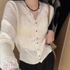 Französische Strickjacke mit Spitzenkragen und Puppenkragen für Damen im Herbst und Winter 2024, neues, eng anliegendes Hemdoberteil