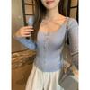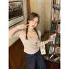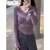 Pure Desire Heißes Mädchen Lila Gestapelter Gestrickter Cardigan Damen Herbst Rundhals Rechte Schulter Schmal Geschnitten Jacke Atemberaubendes Kurzes Oberteil