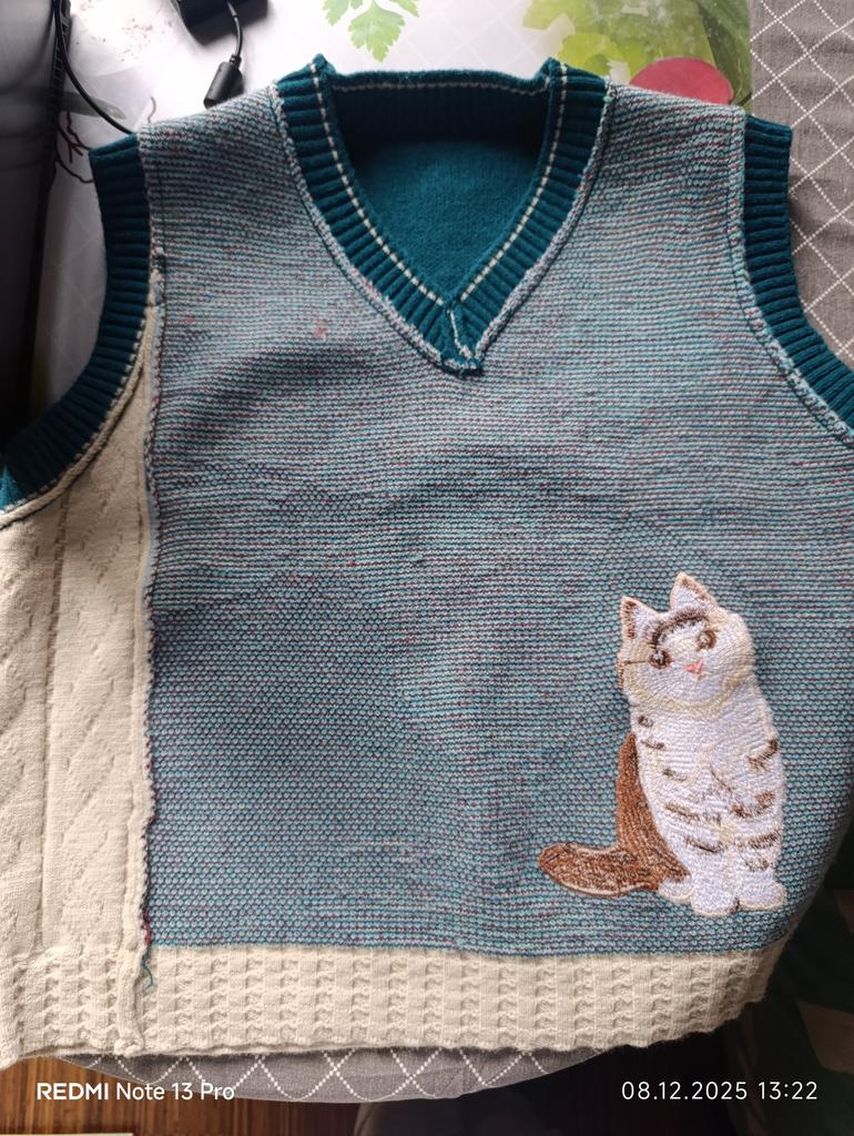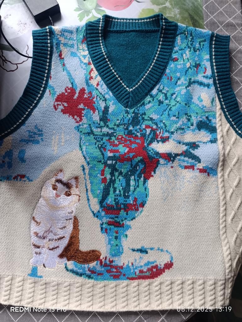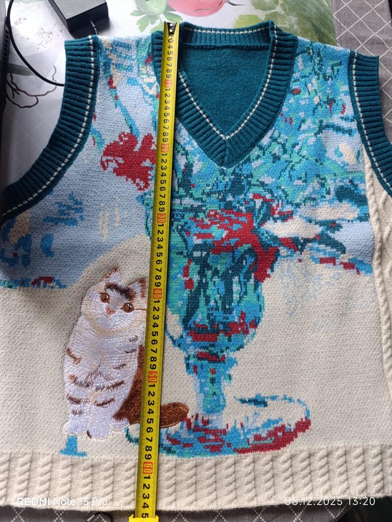 Entspricht den Größen, bei großen Personen wird sie besser sitzen. Dick, warm. Die Katze ist aufgestickt.