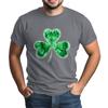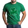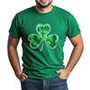 St. Patrick's Grünes T-Shirt für Erwachsene mit Rundhalsausschnitt, kurzen Ärmeln und Aufdruck in Grün mit drei Blättern