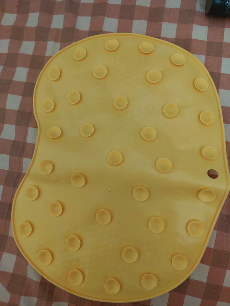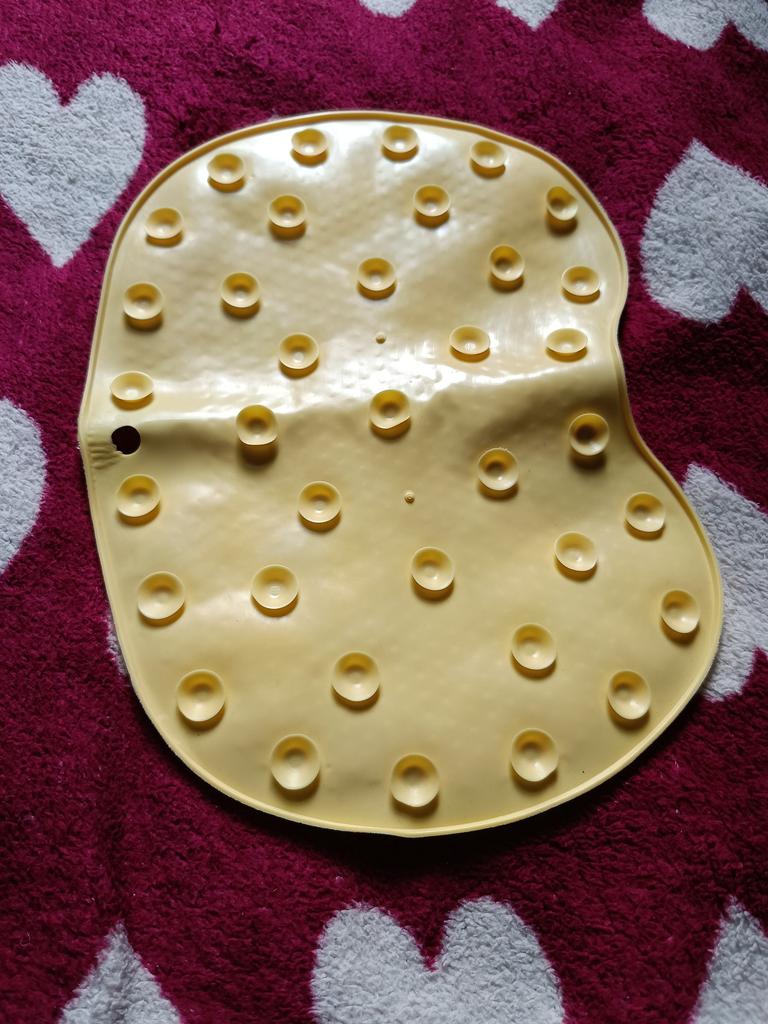 Kleiner als ich erwartet hatte. Aber für das Geld - okay. Mit Saugnäpfen auf der Innenseite. Sehr weich. Gefällt mir. Reinigt die Fußsohlen gut.