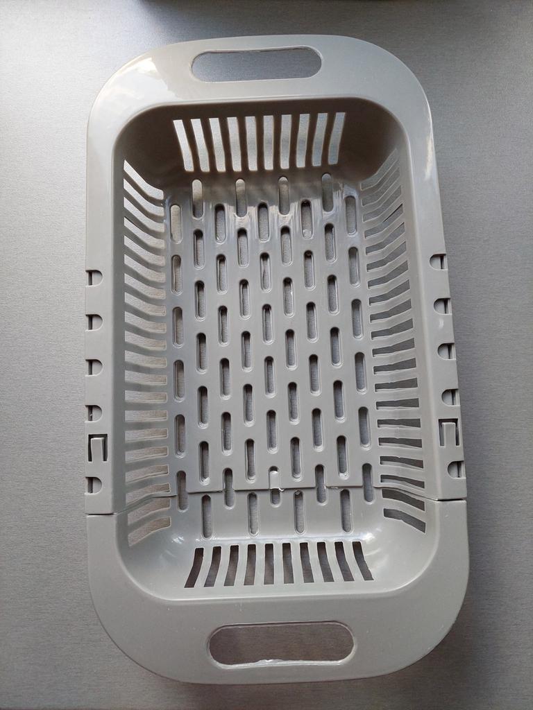 Super, gefällt mir sehr, man wäscht und das Wasser läuft sofort ab, und man trocknet sofort das Obst, sehr praktisch. Lässt sich auf die Länge der Spüle ausziehen.