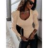 Damen Herbst und Winter Neu Einfarbig V-Ausschnitt Perlenbesatz Puffärmel Ringelstreifen Top