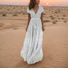 Stilvolles Sommerkleid mit V-Ausschnitt und kurzen Ärmeln, langes Kleid, Urlaub, Strand, gepunktetes Boho-Kleid