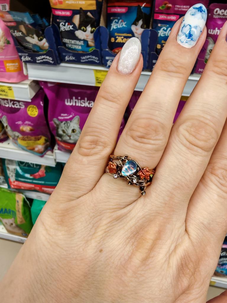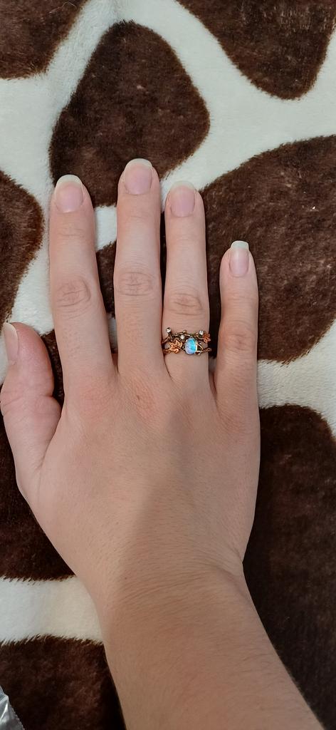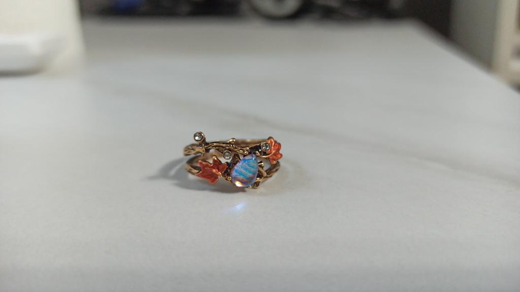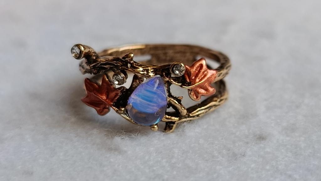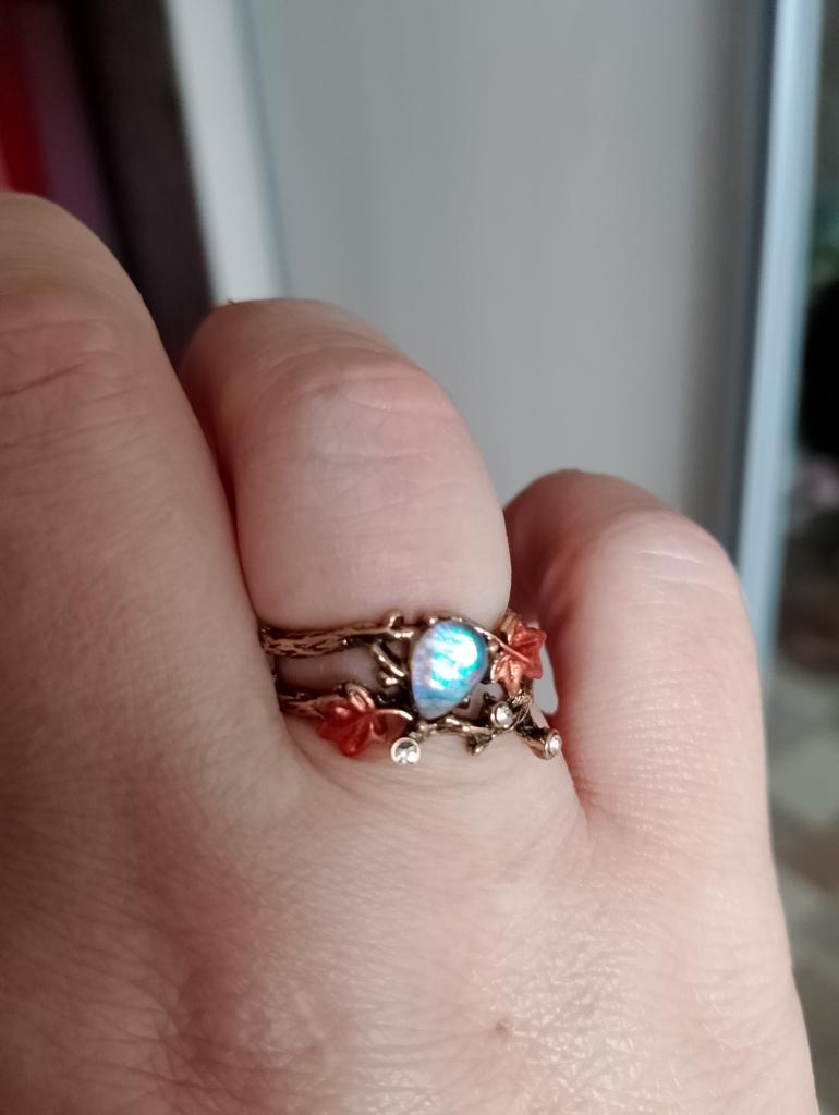 Ein hübscher Ring, etwas schlechter als auf dem Foto, der Tropfen ist größer, die Blätter gröber, aber insgesamt hübsch.