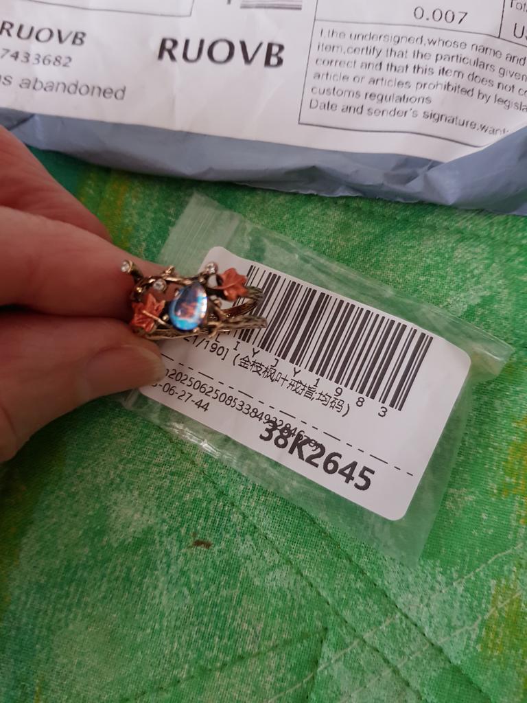 Der Ring kam in einem Sammelpaket 20 Tage. Ausgezeichneter Ring im Elfenstil, wie auf dem Bild! Und die Größe hat gepasst 👍
