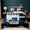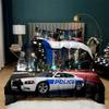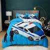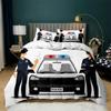 Auto Bettbezug Schwarz Polizist Auto Einzelbettwäsche Set Cartoon Fahrzeug Bettdecke Rot Polizistenlichter Polyester Steppdecke