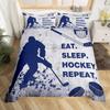Eishockey Bettbezug Helm Schlittschuhe Bettdeckenbezug Winter Eis Sport Spiele Bettwäsche-Set für Jungen Puck Hockeyspieler Steppdeckenbezug