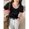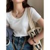 Basic Weißes T-Shirt Damen Kurzarm Sommer Neuer Stil Rundhals Slim Schlicht Baumwoll-T-Shirt Rechte Schulter Top