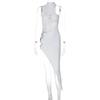 Sexy Hohl Nachtclub Partykleid Weiß Schwarz Damen Ärmellos O-Ring Schlitz Unregelmäßiges Outfit