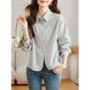 Gestreifte Hemdjacke Damen Frühling Oberbekleidung Langarmbluse Hemd Frühling und Herbst Lässig Faul Wind Tide Vintage Basic Büro Casual Damenhemd