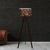 Pratik Ahşap Üç Ayaklı Tripod Lambader Krem Dantel Başlık Salon Oturma Odası Köşe Lambası