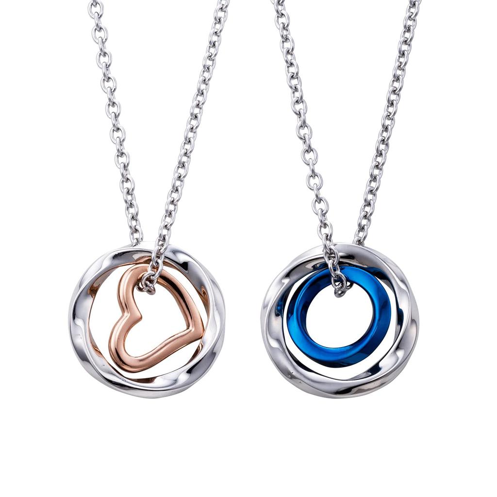 Pair Necklace Allergy Free Surgical Stainless Steel Mobius [White Clover] 4SUP069GO&4SUP069BL