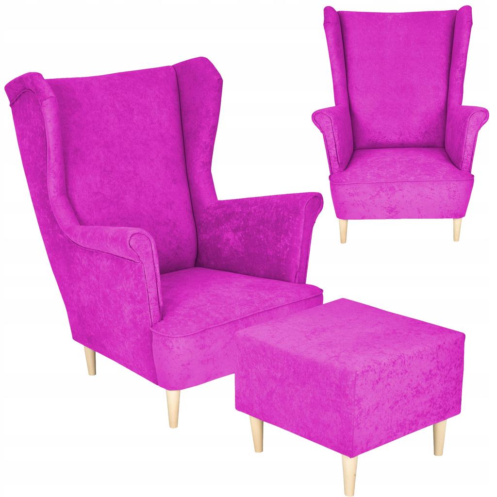 Ohrensessel MAX mit Hocker skandinavisch Family Meble fuchsia rosa