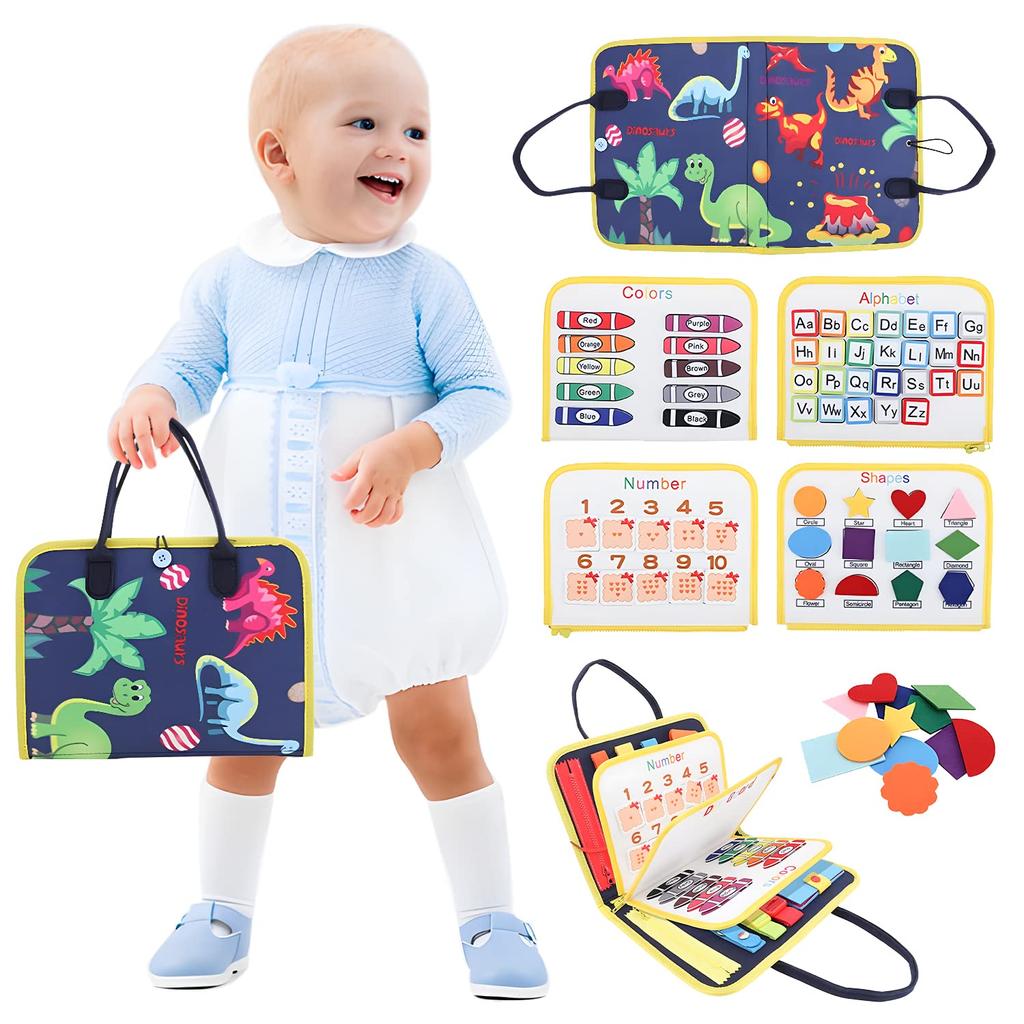 【7 in 1】This educational toy set is an early educational toy for babies, infants and toddlers. Montessori toys with alphabets, colors, graphic shapes, numbers, dinosaur animals, and changing clothes practice themes, each page has interesting pictures to stimulate children's intelligence, creativity, and help develop their abilities.