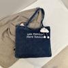 Vintage American Denim Canvas Bag, Large Capacity Embroidered Shoulder Bag, Student Class Commuting Versatile Handbag