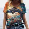 Women's T-Shirts Dolphin Print Tops V-Neck Fashion Female Vintage Aesthetics Tees Loose Oversized Funny Clothing
