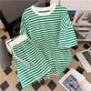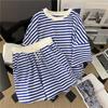 Ladies Summer Striped Casual Suit Round Neck Short Sleeve T-shirt + Shorts Two-piece Set