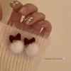 Rote Samtschleife Plüschohrringe - Einzigartiges Fellkugel-Design für Damen, Herbst/Winter-Kollektion 2025
