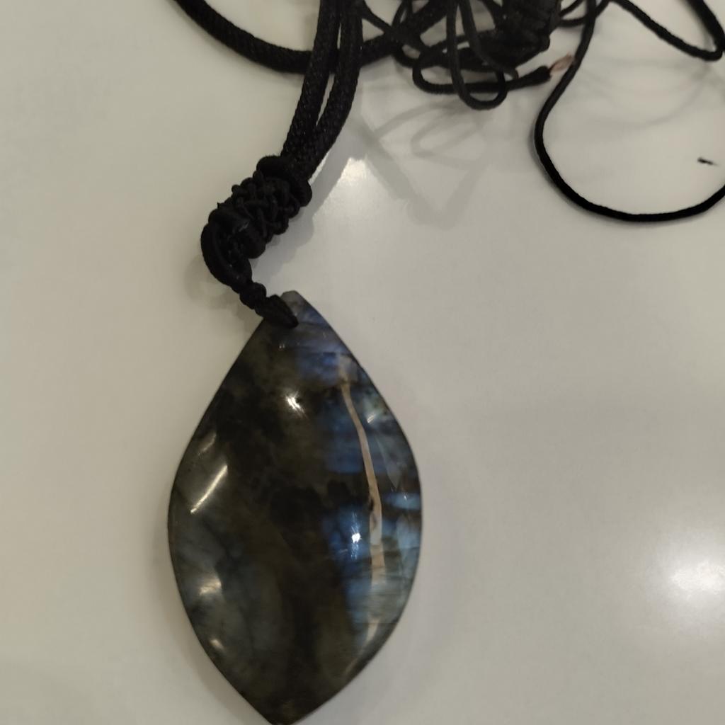 Natürlicher Labradorit-Blatt-Anhänger, blaues Mondlicht, grob poliert, zufällige Form, Schmuck, Kristall-Halskette