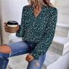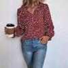 Herbst Damen Floral Pullover V-Ausschnitt Gerüscht Süß Langärmlig Bedrucktes Shirt