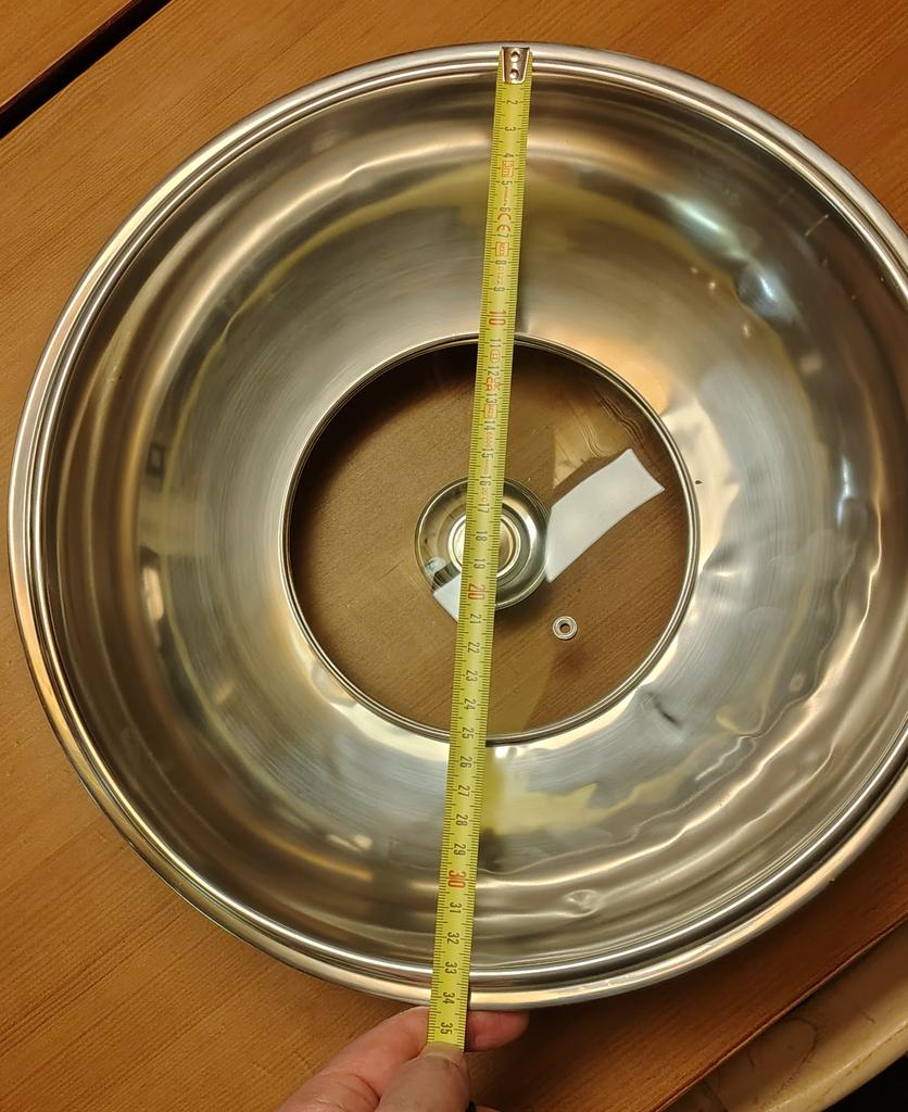 Zwei Probleme, erstens war der Deckel bei Ankunft verbeult, in meinem Fall kein großes Ding, aber die Verpackung bestand nur aus ein paar dünnen Tüten, also das könnte wirklich verbessert werden.. Zweitens, großes Problem: Normalerweise passt ein Deckel mit einer bestimmten Größe zu einem Topf mit demselben Durchmesser. Dieser 36-cm-Deckel passt nicht auf meinen 36-cm-Wok. Wenn ich den inneren Rand des Deckels messe, würde ich sagen, dass der 36-cm-Deckel für einen 34-cm-Topf geeignet ist.
