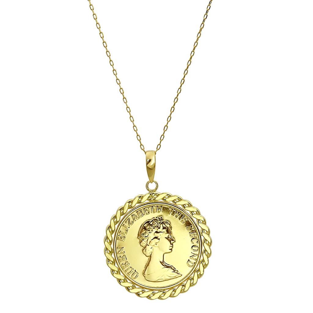 18 Karat Gold Halskette Gold K18 Elizabeth Münze Halskette mit Kette [Sears] sp56-0004