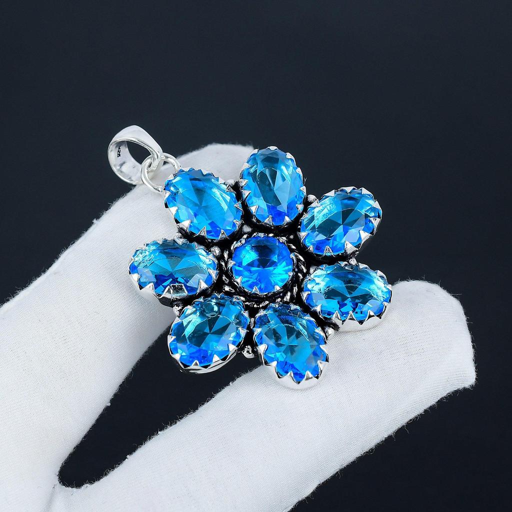 Schweizer Blautopas Edelstein Silber Blumenanhänger in 925 Sterling Silber - Handgefertigtes Birnendesign, Alltagsschmuck Hochzeitsgeschenk
