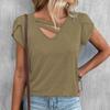 Sommer Kurzarm V-ausschnitt Aushöhlen Frauen Einfarbig Pullover T Shirt Bluse Top