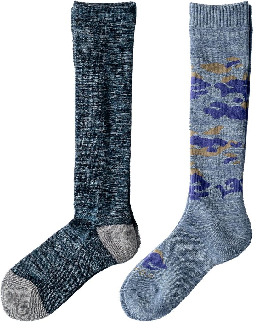 2 Blue Camouflage Blue x Made in Japan [Chiyoji Socks] Men's Ski/Snowboard Socks, Pairs, 25-27cm, & Pattern, Purple,