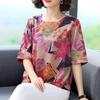 Frühlings- und Sommer-Druck-T-Shirt Damen Locker und Dünn Übergröße Damen Mittleren Alters Mutter Halbarm Basic-Shirt