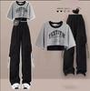 Sommer Damen Trainingsanzug Passendes Set Eleganter lockerer Kurzarm T-Shirt+Hosenträger+Cargohose Dreiteiliger Anzug