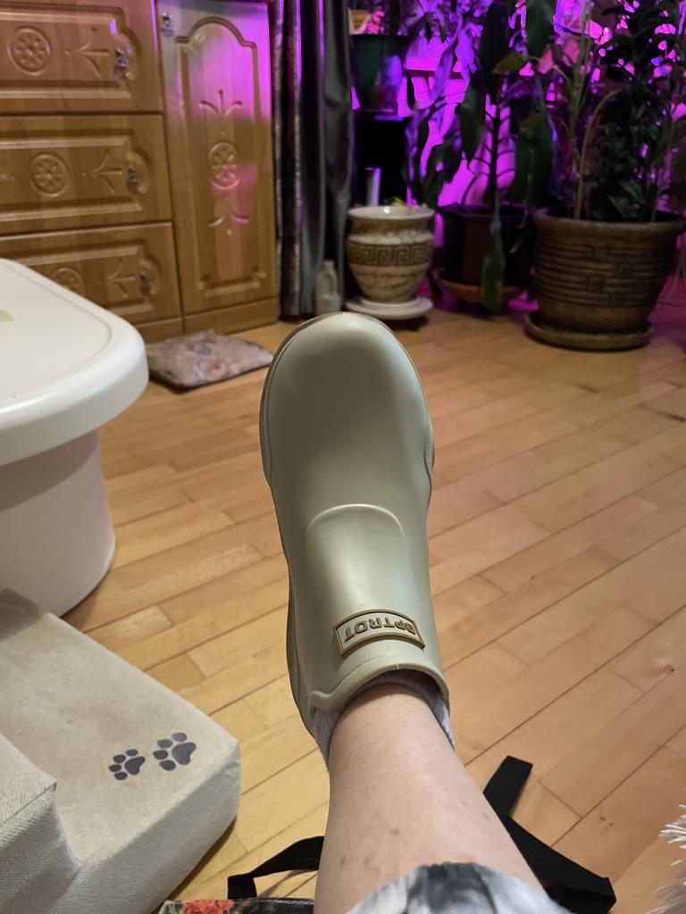 Gute Gummistiefel für den Herbst, genau das, was man braucht. Ich habe sie eine Nummer größer genommen, damit sie nicht zu eng sitzen. Größe 40 passt locker für 39, und am Fuß sind sie sehr geräumig, nicht eng anliegend. Meine Mutter war begeistert.