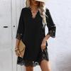 Frühling Sommer Frauen Einfarbig Spitze Kragen Kleider Lose Taille Mitte Lange Blütenblatt Ärmel Kleid S-XL