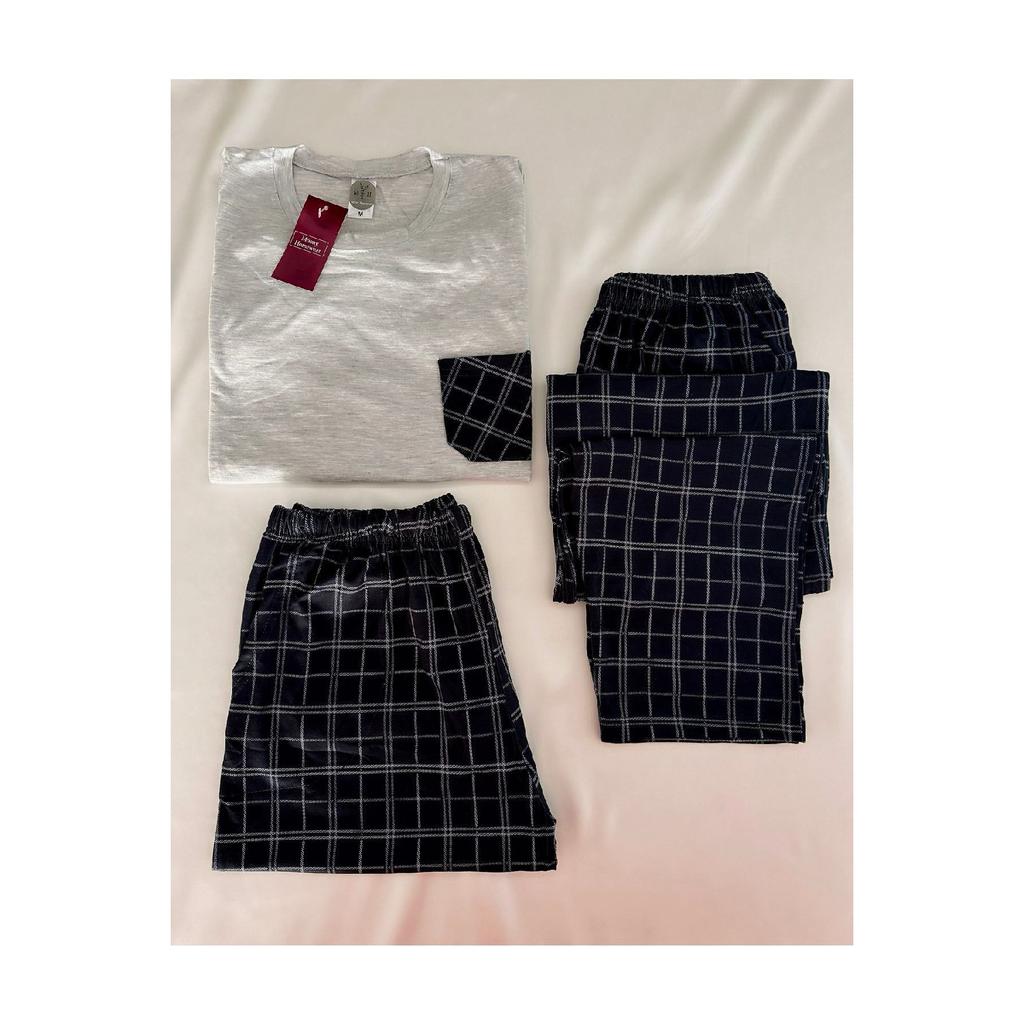 Men's Pajamas With 3 -gray Plaid Dowry Pocket