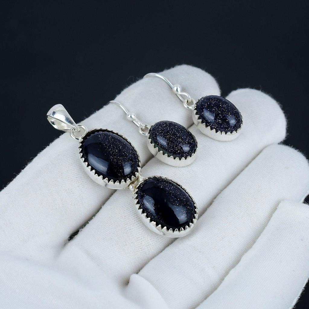 Blauer Sonnenstein Handgemachter 925 Sterling Silber Ohrring Anhänger