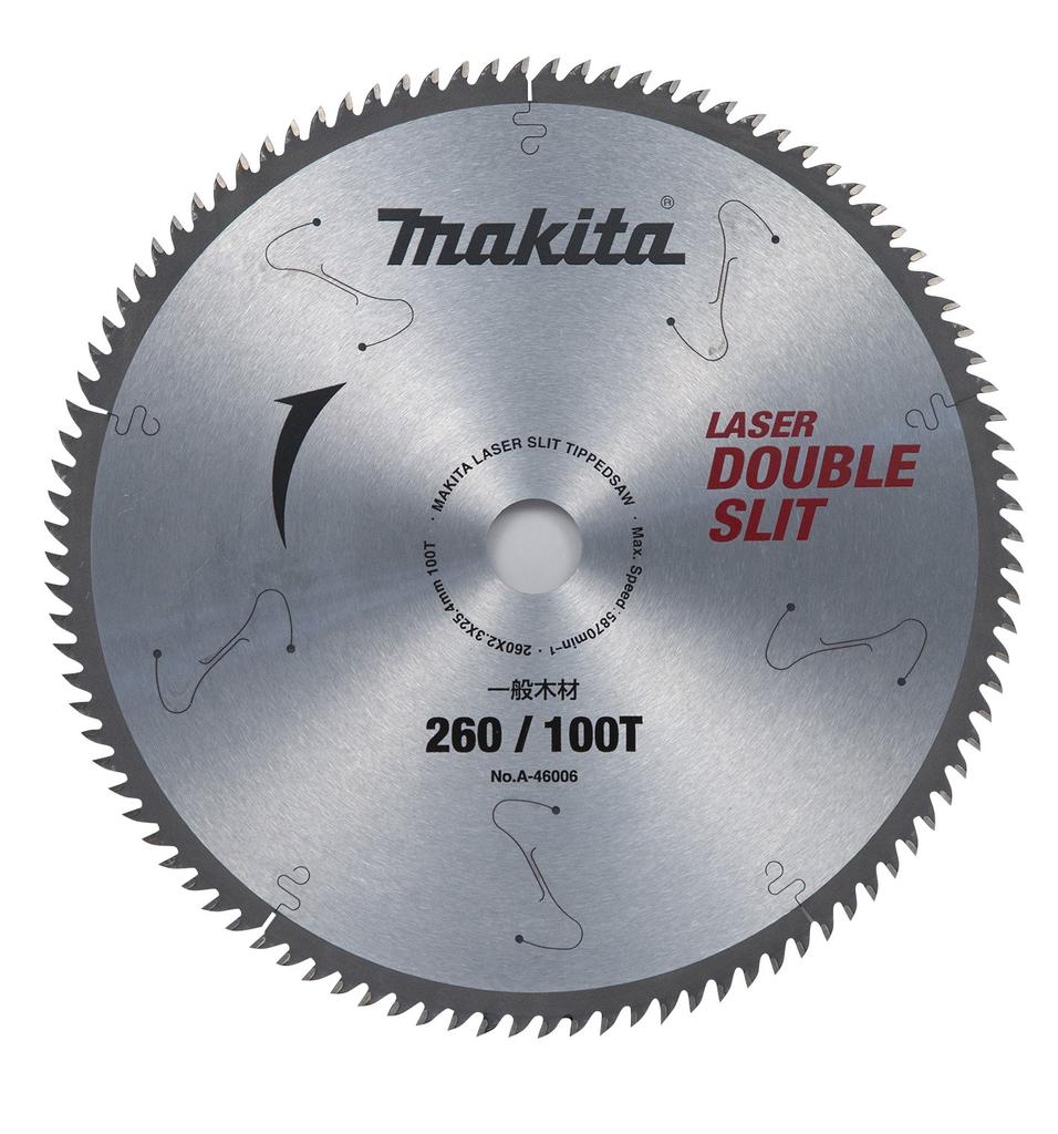 Makita Kreissägeblatt Doppelschlitz Außendurchmesser 260mm Anzahl der Zähne 100T Hochsteife Ausführung Für allgemeines Holz Kreisförmig (Tischkreissäge) A-46006